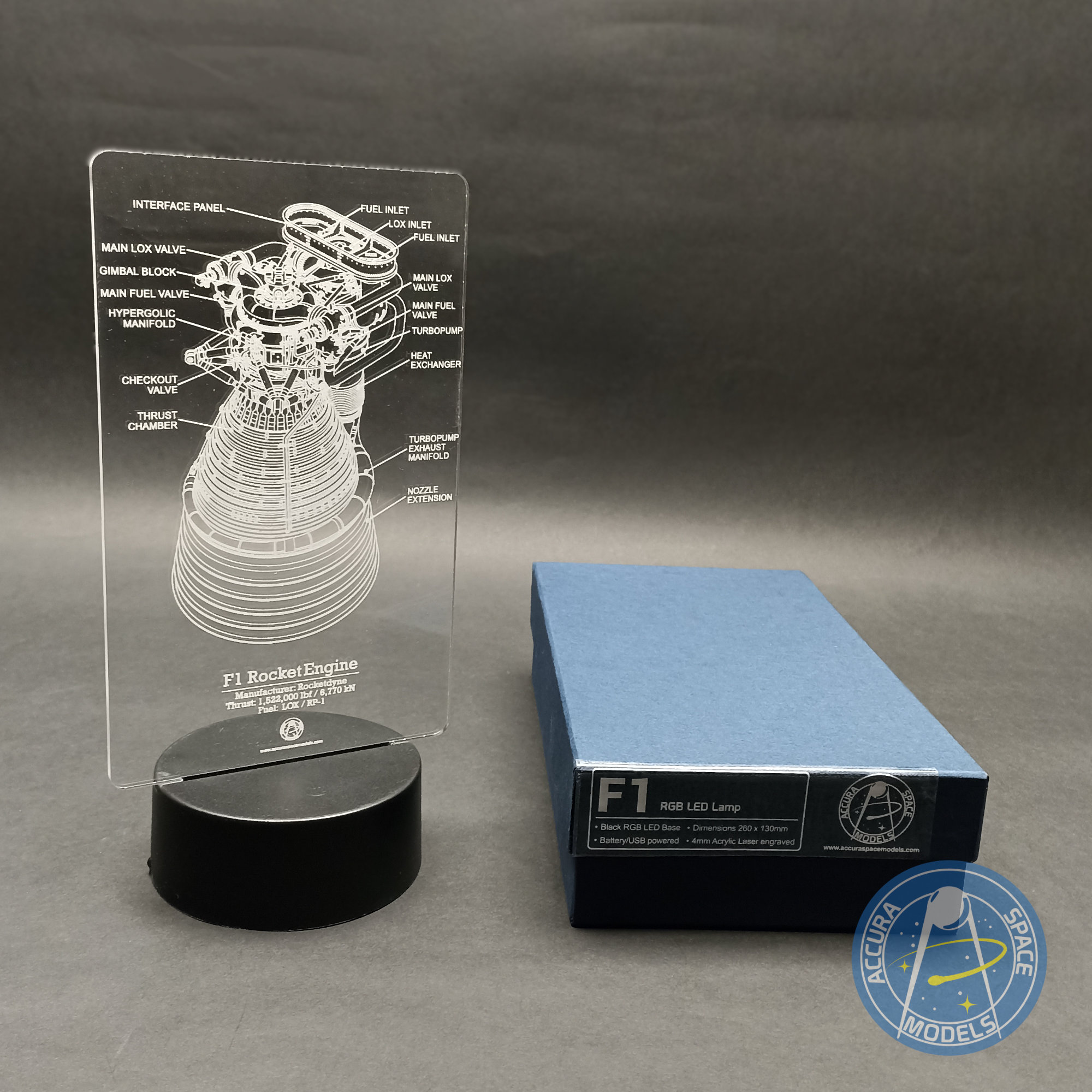4mm thick clear acrylic precision laser engraved with the rocket engines drawing
